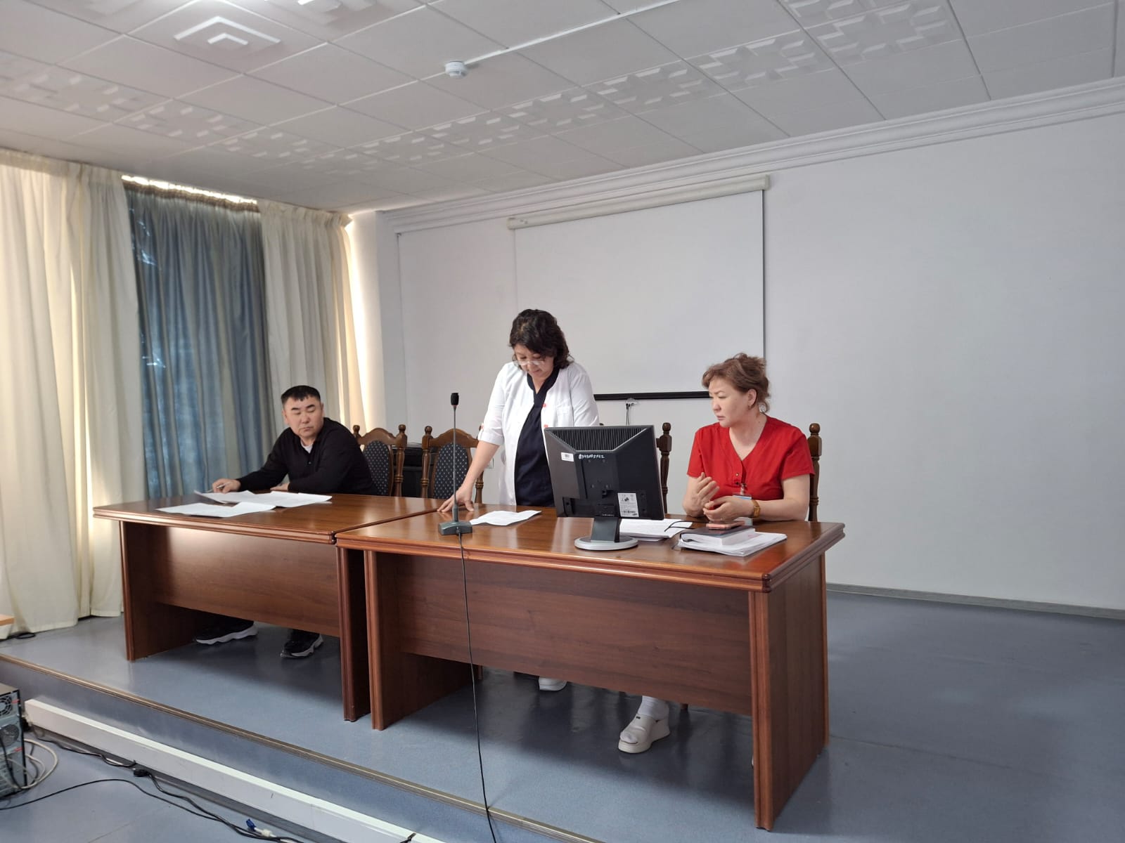 Заңның ережелерін іске асыру мен қызметкерлердің құқықтық сауаттылығын арттырып, медициналық қызметкерлерге қатысты зорлық-зомбылық фактілеріне нөлдік төзімділікті қалыптастыру мақсатында 01 сәуір 2026 жылы «Қалалық орталық емханасы» ШЖҚ КМК-да емхана қызметкерлері қатысуымен құқықтық сабақ өткізіліп, емхана заңгері С.Закиров пен кәсіподақ ұйымы төрайымы Г.Мұстафина қатысушыларға заң талаптарын түсіндіріп, медицина қызметкерлерін құқықтық қорғау бойынша республикамызда атқаралып жатырған жұмыстарға тоқталып өтіп, осы бойынша қызметкерлердің пікірлері тыңдалды.